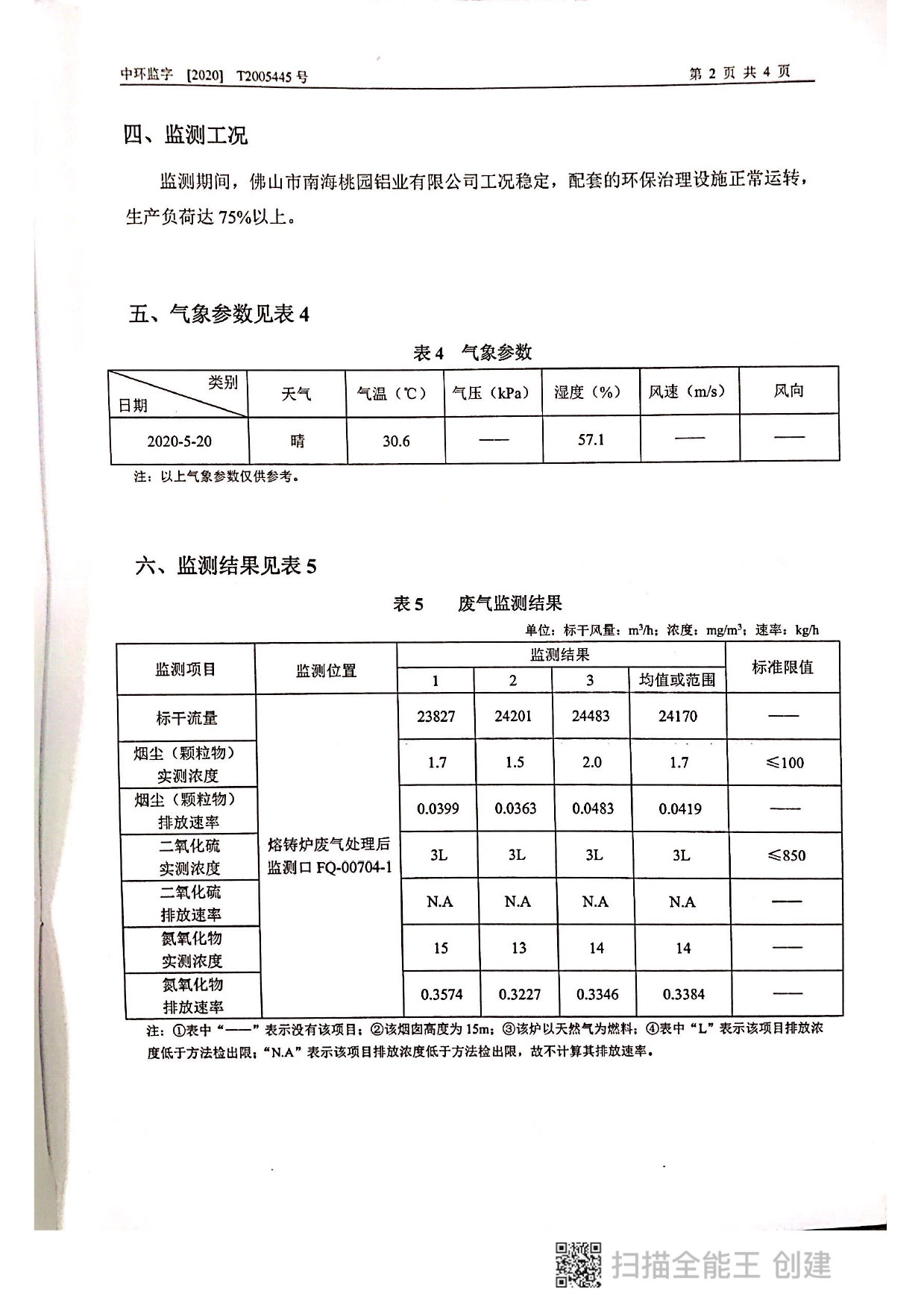 桃園鋁業(yè)2020年5月監(jiān)測報告